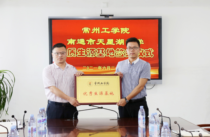 6月21日至22日,副校长张兵带领电气信息工程学院院长毛国勇、党委副书记高静等一行赴南通进行招生宣传,与南通市天星湖中学、江苏省海门实验学校、江苏省包场高级中学、海门市第一中学、海门市证大中学、启东市第一中学、启东市汇龙中学、如东县马塘中学等八所中学签约“优秀生源基地”并授牌。