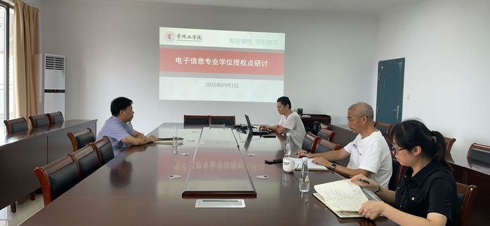 2021年9月1日下午,副校长朱锡芳到电气信息工程学院调研电子信息学科申硕工作进展,在开阳楼C510会议室听取吴峰教授对电子信息学科申硕工作进展情况的汇报。参加会议的有电气信息工程学院院长毛国勇、吴峰教授、计算机信息工程学院孟祥莲博士,各位针对申硕工作目前存在的问题,商讨了解决方案,朱锡芳对下一步工作思路进行了指示。