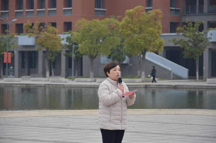 徐霞作国旗下讲话。她强调,青年一代,既要深切缅怀革命先烈,传承英烈精神,也要发愤学习,不懈奋斗。她寄语青年学生,要敢闯敢拼,肩负起青年的时代责任和国家担当,让青春力量在振兴中华的实践中绽放出更加夺目的光芒。