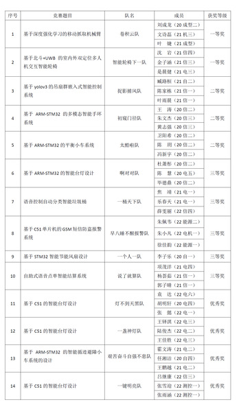 在信盈达公司工程师的培训与指导下,参赛选手对比赛作品经过了四个月打磨。本次大赛采用了现场答辩与演示,共有14个小组参加了本届嵌入式电子创新总大赛。参赛作品涉及领域广泛,有基于北斗+UWB的室内外双定位多人机交互智能轮椅、基于深度强化学习的移动抓取机械臂、基于yolov3的吊扇群嵌入式智能控制系统、语音控制自动分类智能垃圾桶等。最终,卷积云队刘成龙、文诗磊、叶婕和智能轮椅下一队沈岩、金子涵、是晨健在众多作品中脱颖而出,获得了一等奖。
