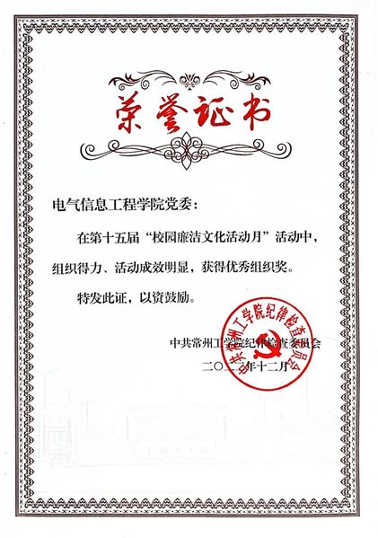 为深入学习贯彻党的十九大和十九届历次全会精神以及十九届中央纪委六次全会和《关于加强新时代廉洁文化建设的意见》精神,学院党委组织全院师生积极参与学校第十五届“校园廉洁文化活动月”活动。活动期间共向学校报送廉洁文化作品43件,新时代廉洁故事作品5件。其中获得二等奖3项,三等奖4项,廉洁故事征集优秀作品1项,学院党委获优秀组织奖。