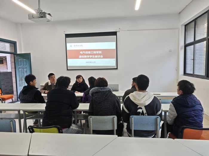 11月19日下午,电气信息工程学院在“一站式”学生社区7C221党团活动室举行退役复学学生座谈会。学院党委副书记徐霞、征兵工作辅导员陆尧及全体退役复学学生参加会议,会议由陆尧主持。