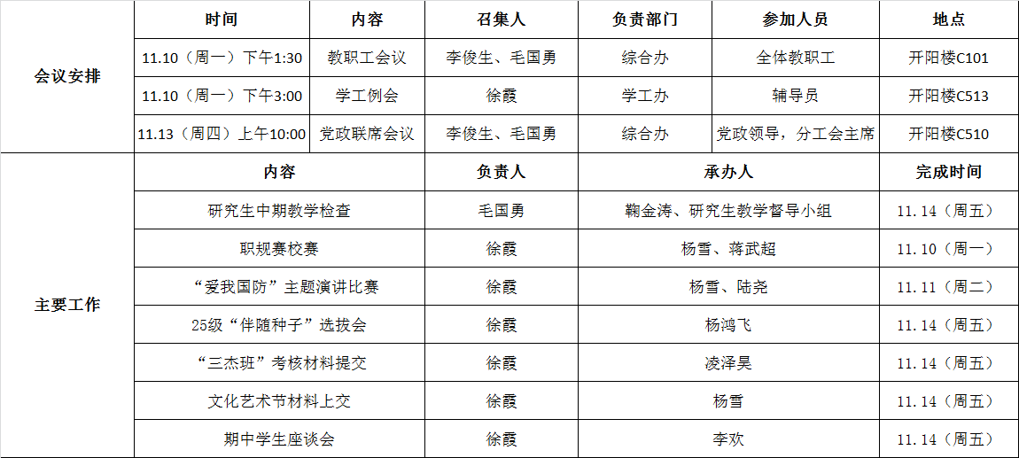电气学院第十一周工作安排(11.10-11.16)