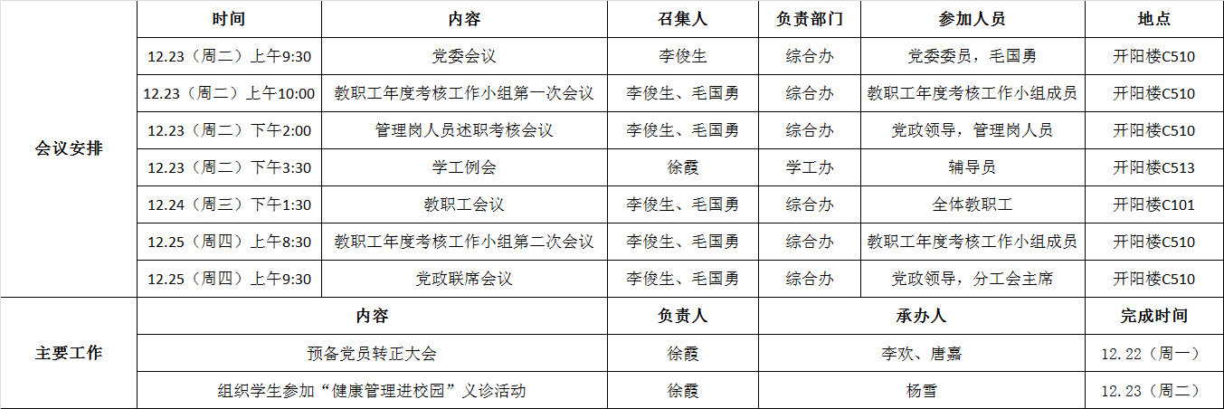电气学院第十七周工作安排(12.22-12.28)