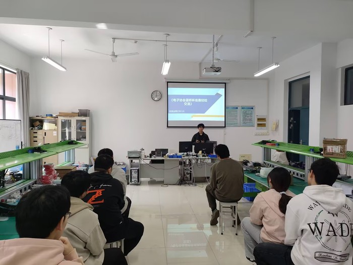 分享会上,指导教师与高年级社员围绕赛事流程解析、核心考点梳理、备赛时间规划等核心内容展开细致讲解。重点聚焦单片机编程逻辑优化、硬件调试实操技巧等关键备赛环节,通过真实参赛案例具象化讲解了高效备赛方法,帮助在场社员对竞赛体系形成了清晰、全面的认知。在自由交流互动环节,社员们踊跃提问,围绕备赛过程中遇到的技术难点、心态调节方法、专业工具使用技巧等问题,与学长学姐展开深度探讨,现场交流氛围热烈浓厚。