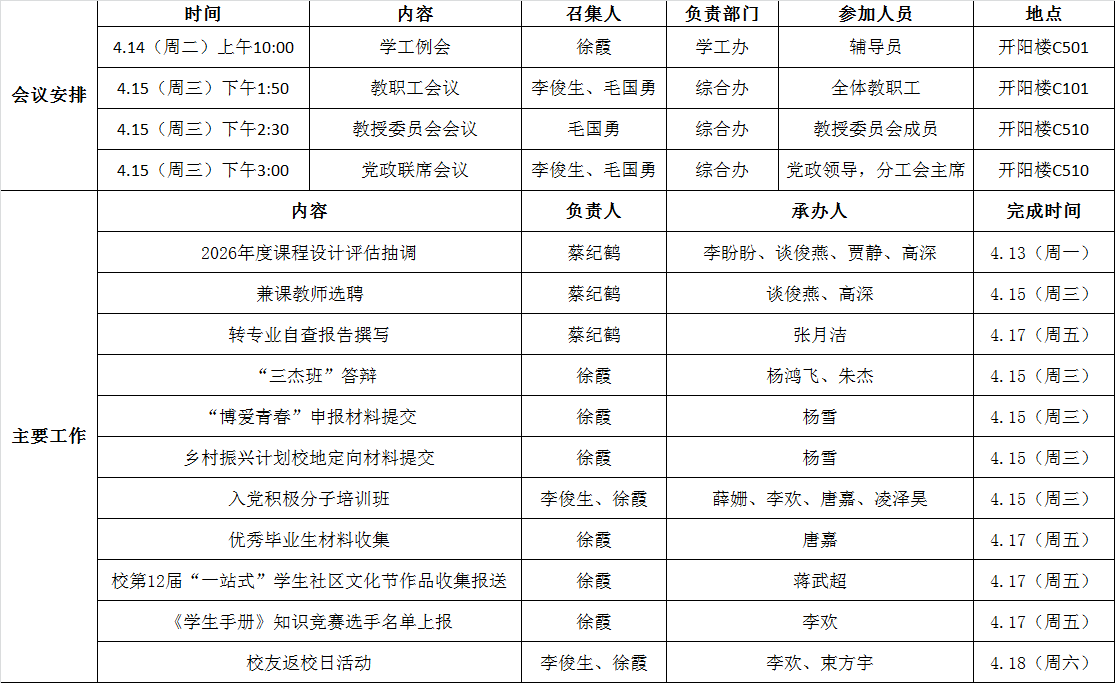 电气学院第七周工作安排(4.13-4.19)